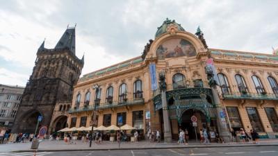 Obecní dům v centru Prahy. Zde v nádherných secesních sálech se bude ve čtvrtek 26. 6. a v pátek 27. 6. hrát další ročník šachového festivalu ČEZ CHESS TROPHY.